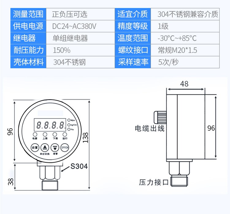 MC不銹鋼電接點數(shù)顯壓力表
