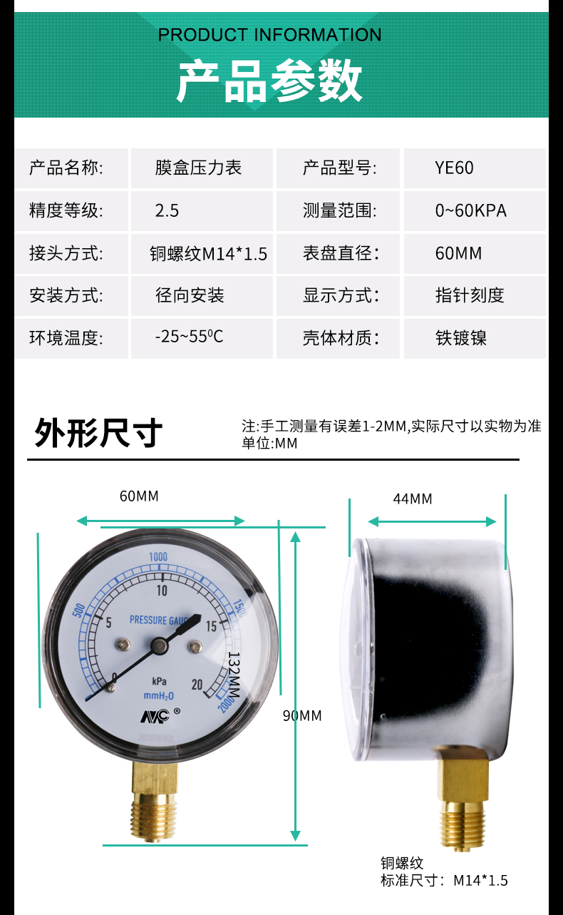 YE-60膜盒壓力表