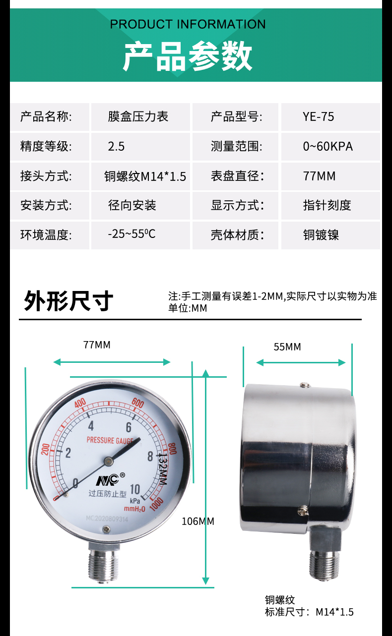 上一個(gè)產(chǎn)品:YE-60膜盒壓力表