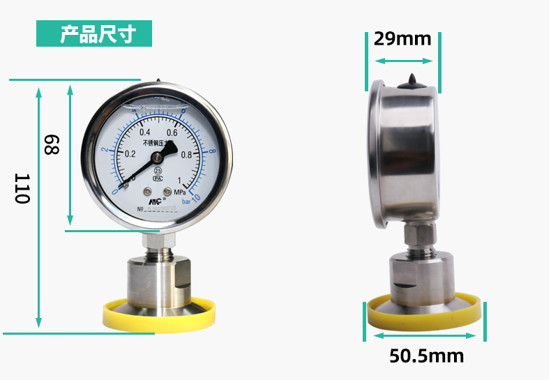 YNTP-60BF不銹鋼衛(wèi)生型隔膜壓力表